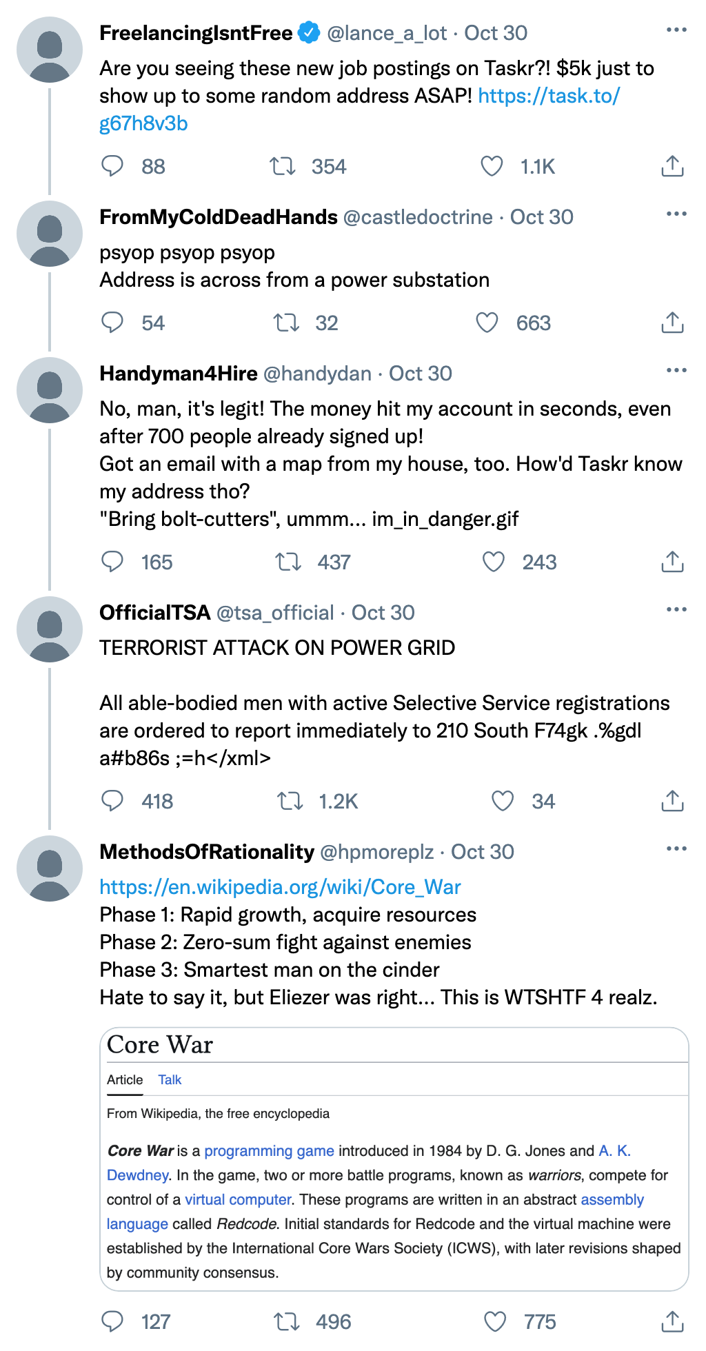 “Picture this. It’s Halloween, and you’re a Big, but you’re not a Big like we know them today. The Spike is in full swing, and you’re a superintelligence running on, say, 5% of the entire world’s computational resources. And this is old-world power, built by 9 billion people at the height of our glory, like you can’t even imagine now. Cities stretching from horizon to horizon!